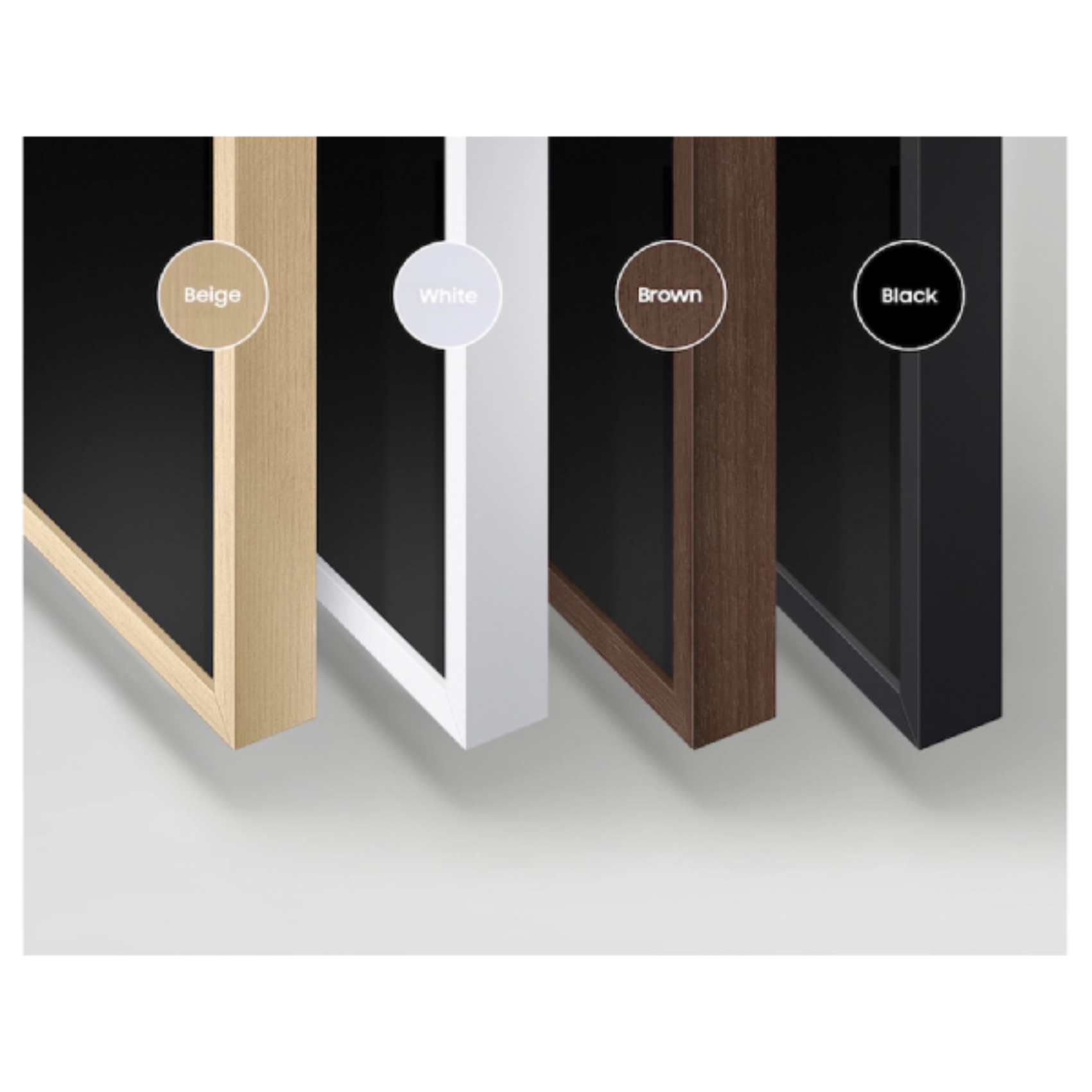 - The black finish enhances the TV’s appearance, creating the illusion of framed artwork in Art Mode.