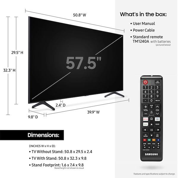 - 58" 4K UHD Crystal Display for vibrant colors