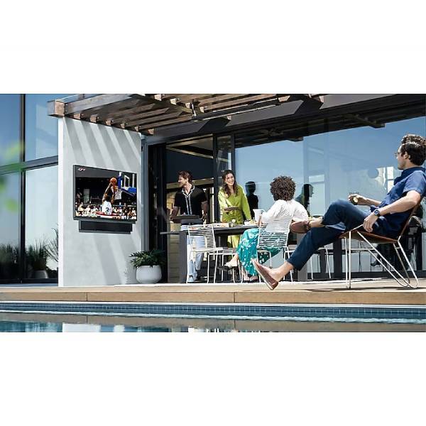 Enjoy a bright and brilliant 4K QLED Outdoor TV, engineered to look vivid even in daylight. Its IP55 weatherproof rating ensures performance and protection from outdoor elements, including water, dust, and heat. Powered by Tizen, this smart TV offers features like Airplay 2, Multi View, Tap View, and Mobile Mirroring to elevate your viewing experience. The wide viewing angle with anti-glare technology greatly reduces reflections while enhancing picture contrast levels. With Direct Full Array 16X, precisely controlled backlights deliver richer blacks and sharp contrast for crisp details. Control your TV effortlessly with your voice using Bixby, Alexa, or Google Assistant. Please note, the mount is not included and should be purchased separately to suit your specific needs.