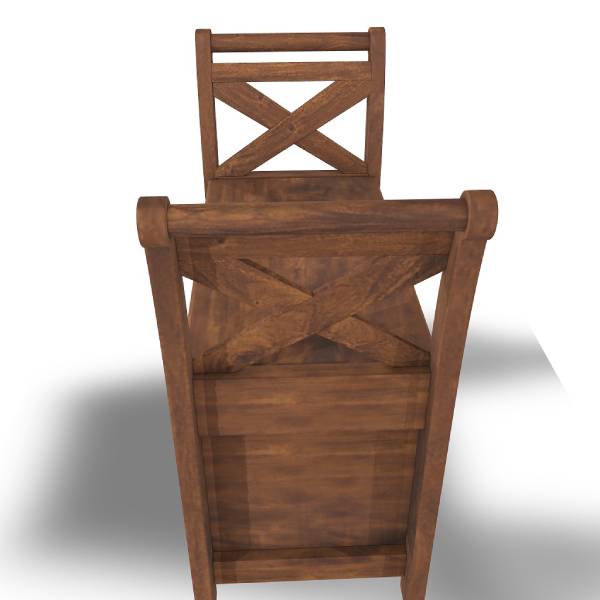A beautifully crafted bench with a multitonal rustic finish, featuring classic X-braces and a hinged seat with hidden storage. Durable wood construction offers both style and functionality. Assembly required.
