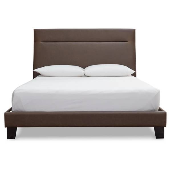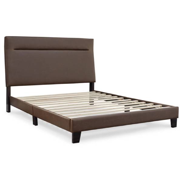 The Adelloni King Upholstered Bed effortlessly blends modern simplicity with practical elegance. Designed with clean lines and a sleek, contemporary profile, this bed creates the perfect environment for rest and rejuvenation. The brown faux leather upholstery not only adds a touch of sophistication but also ensures a soft, inviting feel, making it an ideal centerpiece for any bedroom.