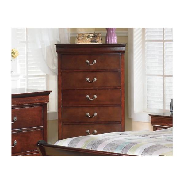 The distinctive Louis Philippe-style molding along the edges further enhances its classic appeal, showcasing meticulous craftsmanship. Prioritizing safety, the chest includes a tip-over restraint device, ensuring stability for family-friendly living. Ideal for both small spaces and larger bedrooms, the Alisdair Chest is a versatile storage solution that blends heritage-inspired design with modern convenience. Available exclusively at Teletime, this elegant chest brings timeless sophistication to your home.