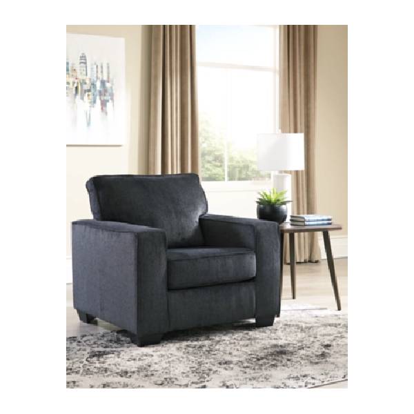 This contemporary chair in slate gray features plush cushioning and chenille-feel upholstery, complemented by a sag-resistant platform foundation for long-lasting comfort and style. Perfect for any color scheme.