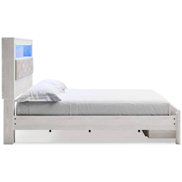 What sets the Altyra Bookcase Bed apart is its ingenious storage solutions. The headboard boasts a built-in bookcase with open shelving, providing ample space to display decorative accents, keep nighttime essentials within arm's reach, or showcase your favorite books. Additionally, the bed frame incorporates two spacious storage drawers at the footboard, perfect for stowing away extra linens, pillows, or clothing, helping you maintain a clutter-free space.