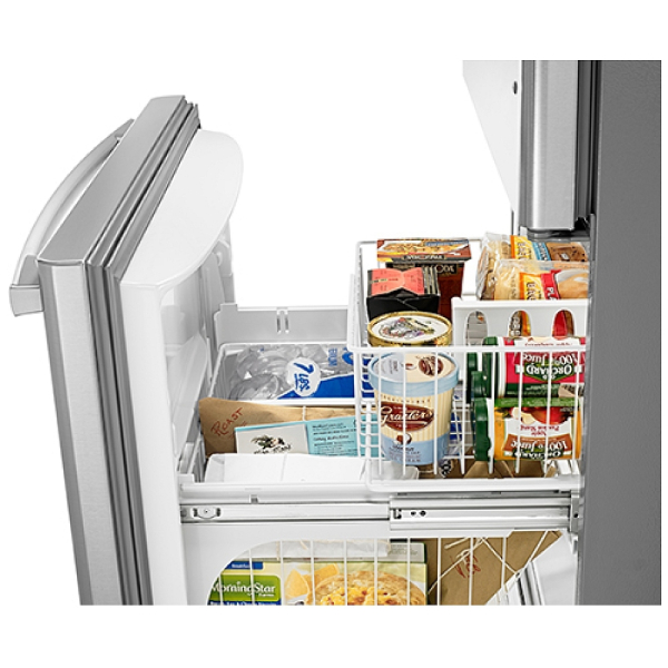Organize your frozen treats efficiently with the Glide-Out Wire Lower Freezer Basket and QuickSplit™ Organizer.