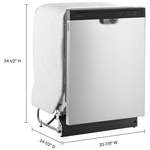 Amana ADB1400AMS Dishwasher, 24 inch Exterior Width, 59 dB Decibel Level, Full Console, 3 Wash Cycles, Steinless Steel colour