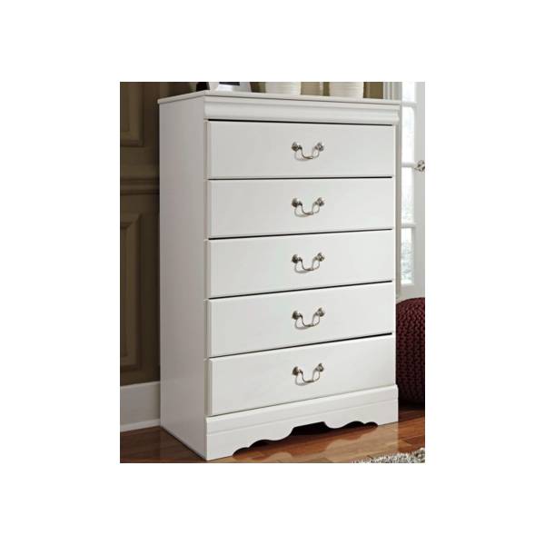 The Anarasia Five Drawer Chest provides ample storage space to keep your essentials neatly organized. Its durable craftsmanship ensures long-lasting reliability, while the elegant design enhances your room's aesthetic. This versatile chest seamlessly blends functionality with timeless charm.
