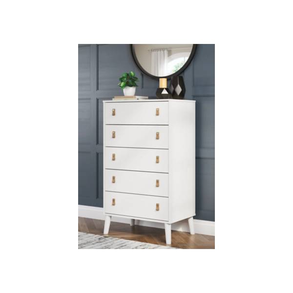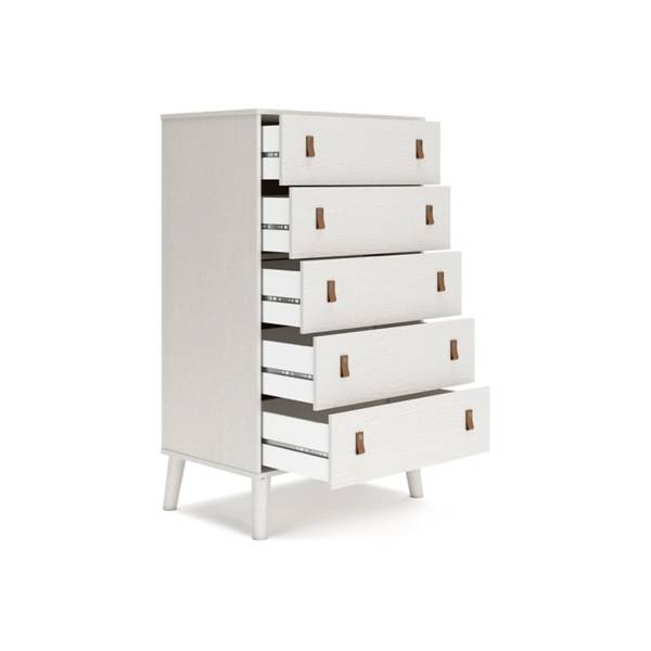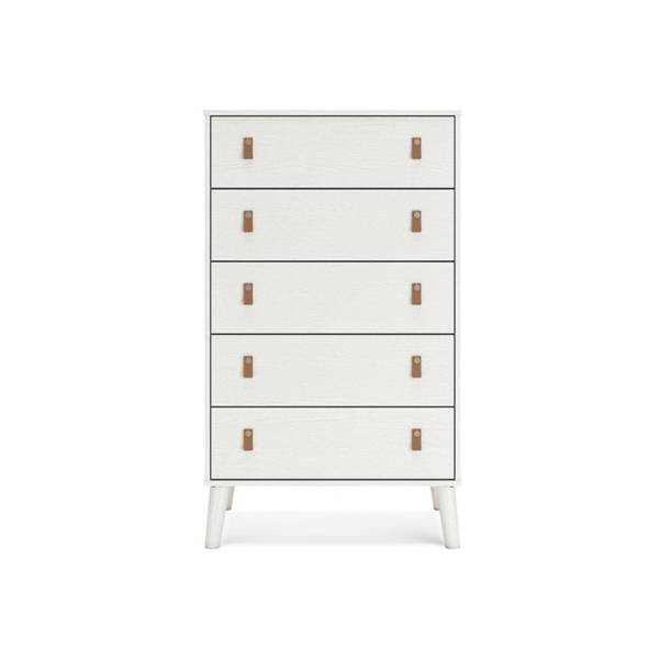 The Aprilyn Five Drawer Chest offers spacious storage while showcasing a durable construction that stands the test of time. Thoughtfully designed for effortless organization, it adds a touch of style to any room. Its versatile functionality ensures it meets both aesthetic and practical needs.