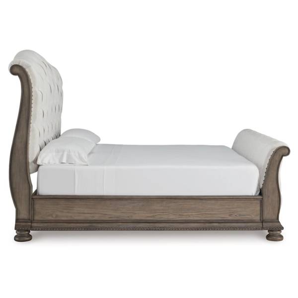 The Ardenfield California King Upholstered Sleigh Bed effortlessly blends traditional elegance with modern comfort, elevating your bedroom into a serene retreat. Radiating timeless sophistication, this bed features shapely curves, a glazed antiqued-look finish, and luxurious tufted cushions, creating an atmosphere of refined beauty and style.