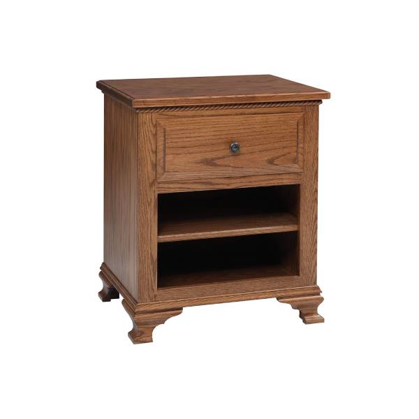 Crafted from engineered wood and decorative laminate, this nightstand offers a balance of durability and affordability, ensuring it stands the test of time. The smooth-gliding drawer, complete with a faux linen laminate interior, provides convenient storage for bedtime essentials, while the open display shelf offers additional space for books, toys, or decorative pieces.