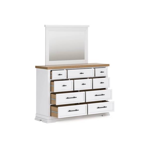The Ashbryn Dresser and Mirror combines modern design with timeless elegance.Its spacious drawers and sturdy craftsmanship offer lasting functionality.A perfect blend of form and function to enhance any bedroom space.