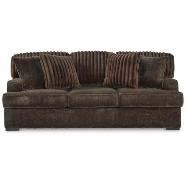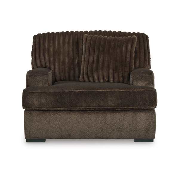 The Aylesworth Sofa, Loveseat, Chair, and Ottoman set is designed to elevate your living space with its contemporary aesthetics and comfortable seating. Its rich chocolate color and plush cushions provide a cozy atmosphere, making it perfect for both relaxation and entertaining guests.