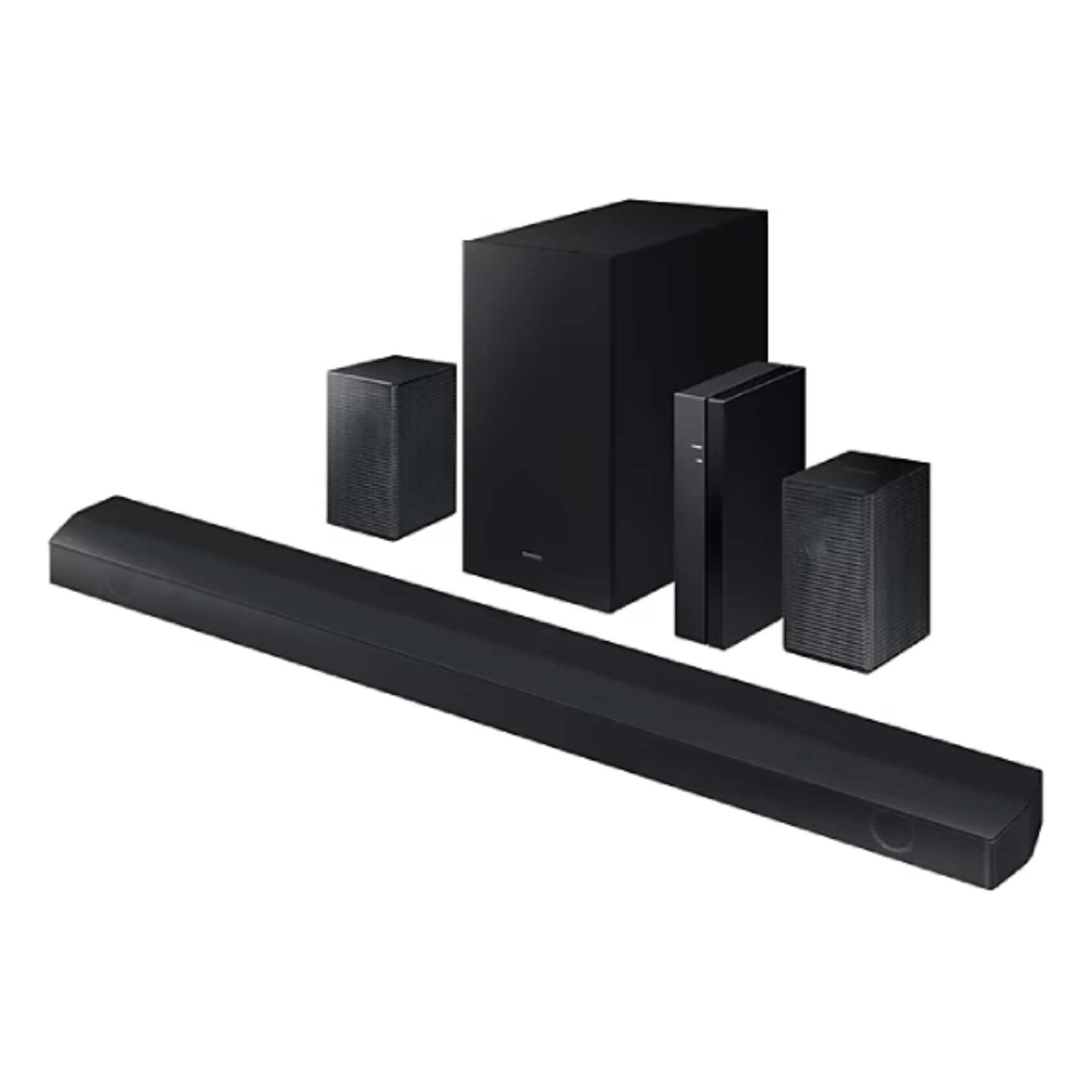 A key feature of the HW-B67C is its inclusion of a wireless subwoofer. The subwoofer enhances the overall audio by delivering deep, powerful bass that adds impact to low-frequency sounds. Whether you're enjoying music with heavy beats or watching an action movie with intense sound effects, the subwoofer ensures that you can experience the full depth of the audio. The wireless design of the subwoofer offers the flexibility to place it anywhere in the room without the hassle of tangled wires, allowing for easy setup and optimal sound positioning.
