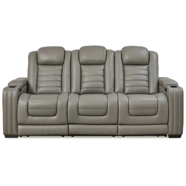 The Backtrack Sofa, Loveseat, and Recliner set blends high-tech advancements with downhome comfort, offering a stylish and luxurious reclining experience. Upholstered in genuine leather in seating areas and armrests, it ensures indulgence where it matters most, while contemporary tufting enhances its sleek design. The power reclining sofa features dual-sided reclining, a middle stationary seat, and one-touch power controls with adjustable positions, an Easy View™ adjustable headrest, and a zero-draw USB plug-in. The zero-gravity mechanism raises the ottoman for better circulation, while the air massage system—offering steady, pulse, and wave settings—delivers ultimate relaxation. For added comfort, the heated seat element provides soothing warmth, and the storage armrests with cup holders and a drop-down table enhance convenience.