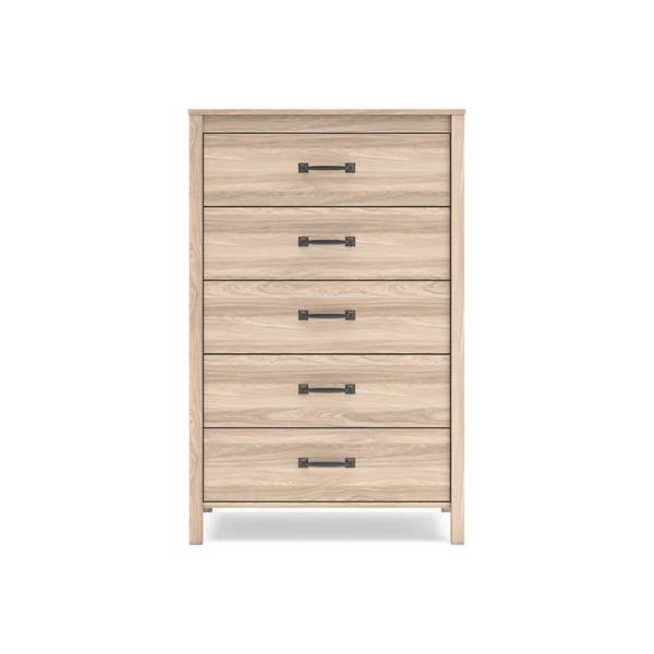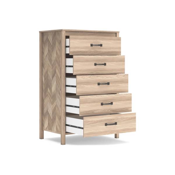 Designed with safety as a priority, the chest meets ASTM F 2057 stability standards, making it a secure addition to any living space. With fully extending drawers for maximum access and easy assembly at home, the Battelle Five Drawer Chest is the ideal blend of style and practicality for your modern lifestyle.