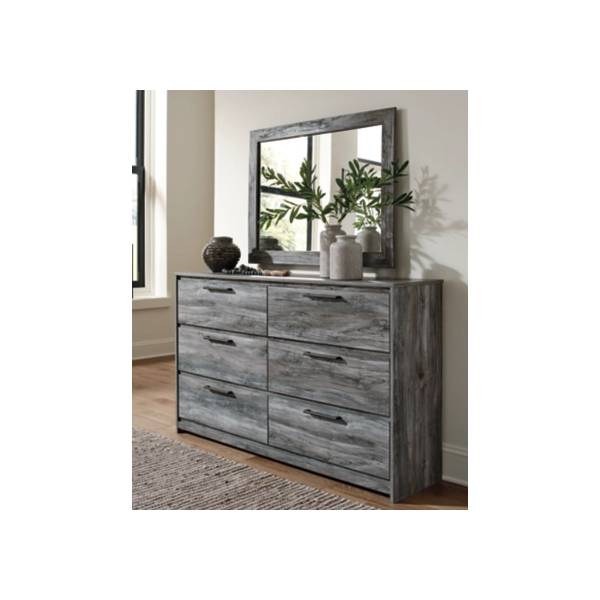 The Baystorm Dresser and Mirror set brings a breezy coastal vibe with its weathered driftwood finish.Designed for both durability and style, it offers ample storage to keep your space organized.The matching mirror enhances the set's relaxed charm, creating a fresh and modern bedroom look.