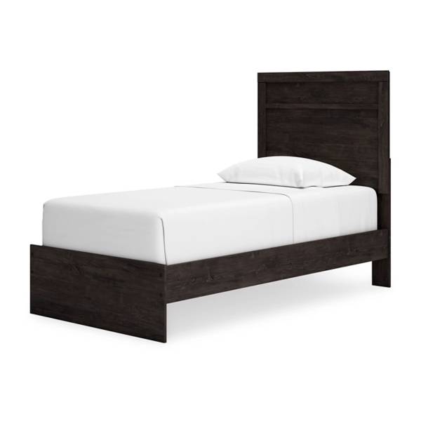 Elevate your bedroom with the sleek and modern charm of the Belachime Twin Panel Bed, exclusively from Teletime. Designed with clean lines and a contemporary attitude, this bed offers a refreshing style update that will complement any space. Its dark charcoal finish over replicated oak grain creates a warm, sophisticated look that pairs effortlessly with a variety of furniture finishes, making it a versatile addition to your home.