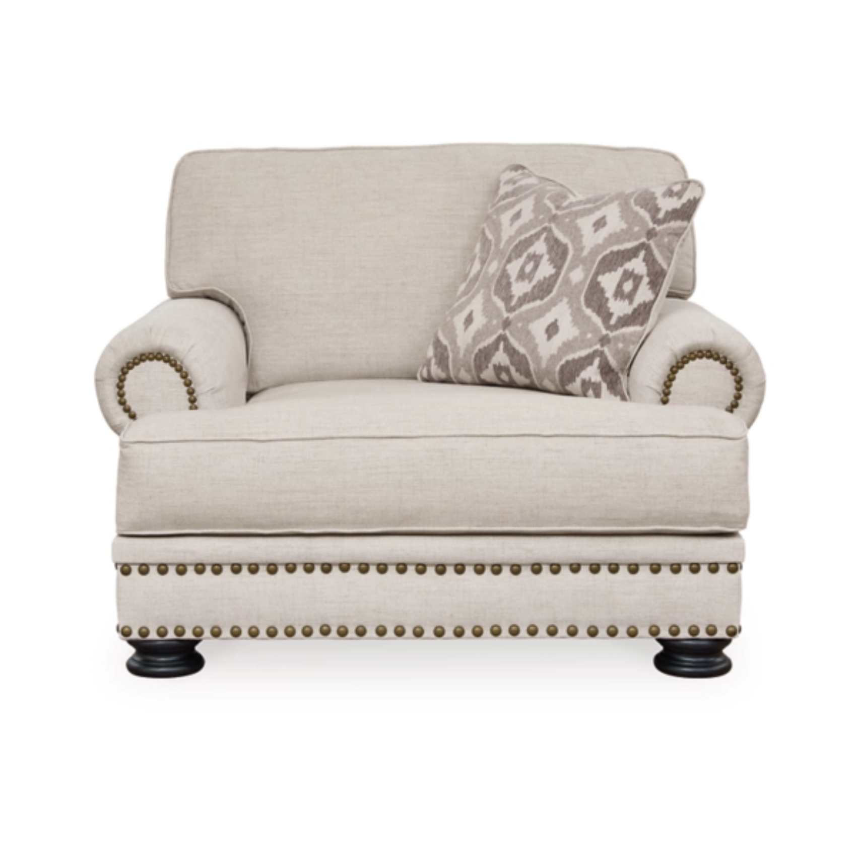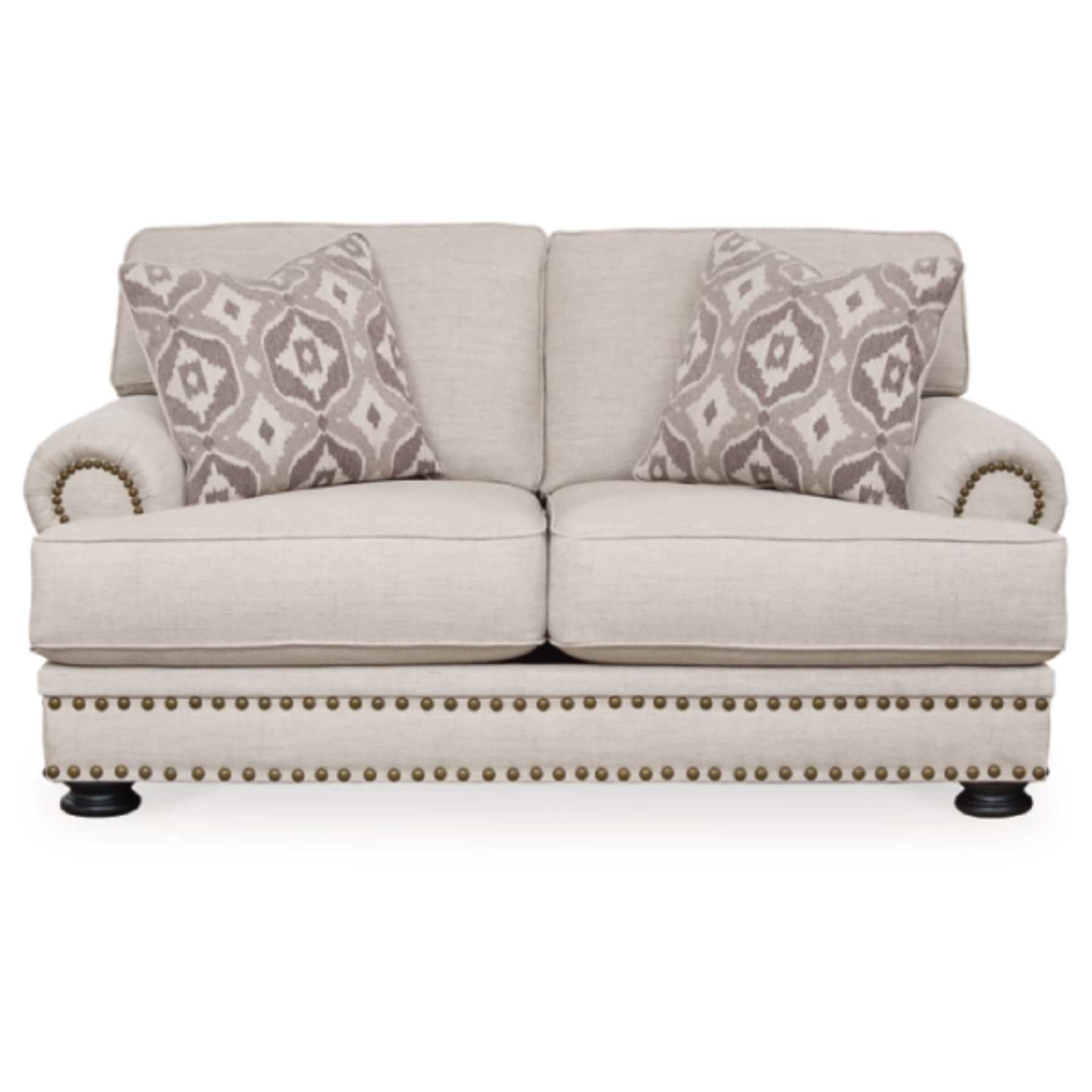 Loveseat: At 53 inches wide, 37 inches deep, and 38 inches high, the loveseat provides cozy seating for two. It shares the same design elements as the sofa, including plush cushioning and elegant upholstery, maintaining a cohesive look in your living space.