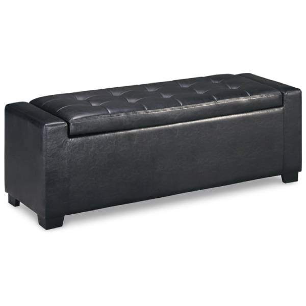 Elevate your living space with the stylish and functional Benches Upholstered Storage Bench, available exclusively at Teletime. Designed to impress, this beautifully tailored bench combines sophisticated design with practical utility, making it a versatile addition to any room. Its sleek black faux leather upholstery, enhanced by elegant button tufting, adds a touch of timeless charm and contemporary appeal.