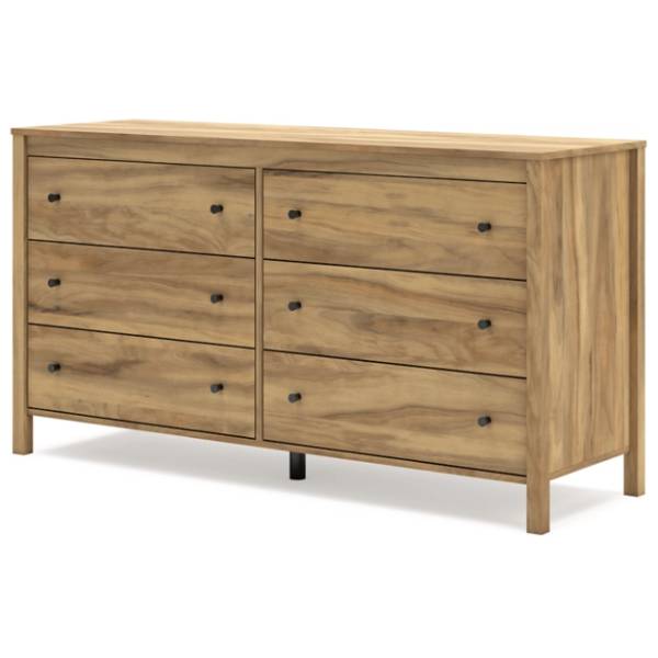 Thoughtfully crafted from durable engineered wood with a decorative laminate surface, the Bermacy Dresser ensures long-lasting performance while maintaining a consistent texture and color. Six smooth-gliding drawers provide generous storage for clothing and daily essentials, with ball-bearing side glides and vinyl-wrapped interiors enhancing durability and ease of use. Dark bronze-tone knobs add a refined touch, complementing the warm finish effortlessly.
