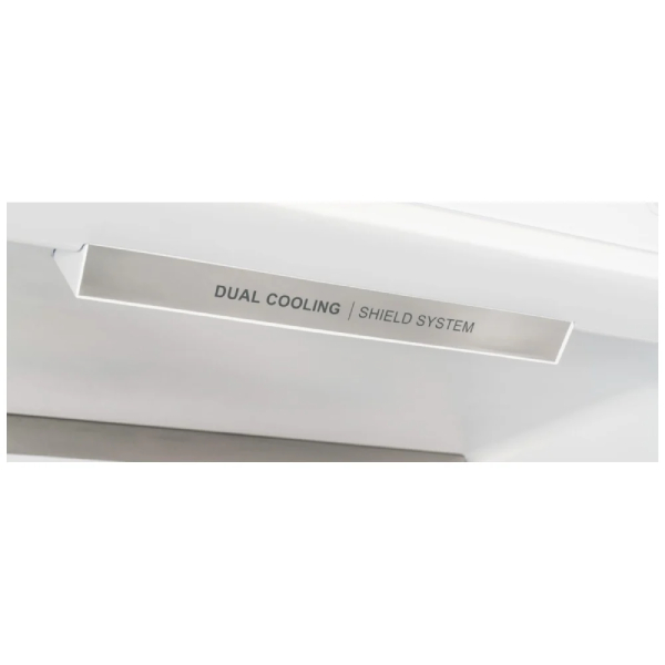 The Dual Cooling Shield System ensures optimal food storage conditions by providing automatic defrosting for both evaporators. The freezer compartment includes two metal drawers and an automatic ice maker, ensuring you have everything you need for efficient and organized storage.