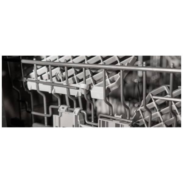 With the capacity to load up to 15 place settings, this dishwasher is both versatile and spacious. It comes equipped with three thoughtfully designed racks: a cutlery tray that keeps utensils neatly arranged, a height-adjustable middle rack that can be loaded on two levels to fit larger items, and a lower rack with folding tines that accommodate a variety of cookware. The advanced cleaning system uses three powerful spray arms to effectively eliminate tough deposits, leaving your dishes spotless. The intuitive, concealed multi-button interface allows you to select from six wash cycles and seven customizable wash options, providing maximum flexibility for any cleaning need.