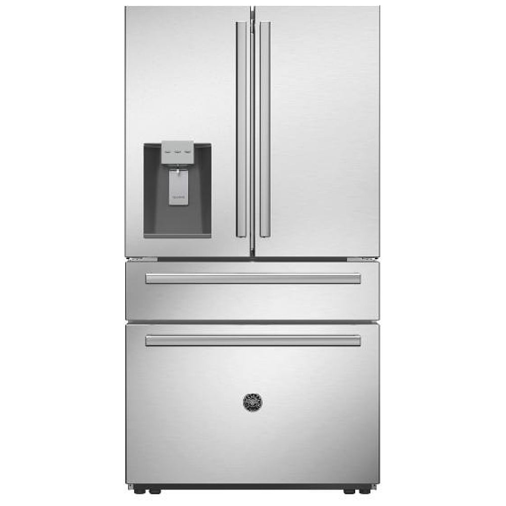 Introducing the 36 Inch Freestanding 4-Door French Door Refrigerator with 21.6 Cu. Ft. Total Capacity from Bertazzoni. Crafted with the highest grade materials and components, this stainless steel refrigerator blends seamlessly with other Bertazzoni appliances, thanks to its compatibility with three available handle kits: Professional, Master, and Heritage Series styles.