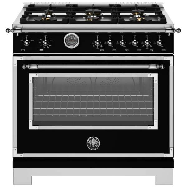 Bertazzoni HER366BCFGMNET Gas Range, 36 inch Exterior Width, Convection, 6 Burners, 5.7 cu. ft. Capacity, 1 Ovens, Nero colour Dual Convection, Telescopic Gliding Extension Rack, Soft Close Door, Infrared Broile