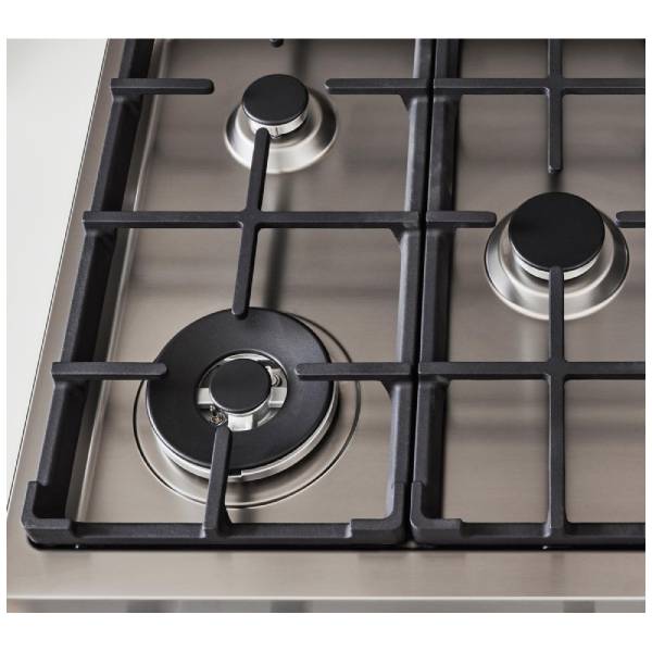 Designed for the modern chef, this gas range features a high-efficiency cooktop with five burners, including a powerful dual-ring burner that delivers an impressive 19,000 BTUs. This allows you to boil water in under six minutes, making it the best in its class. The additional four MonoBloc burners provide varying sizes and power outputs, accommodating every cooking style, from delicate simmering at 750 BTUs to high-heat tasks.