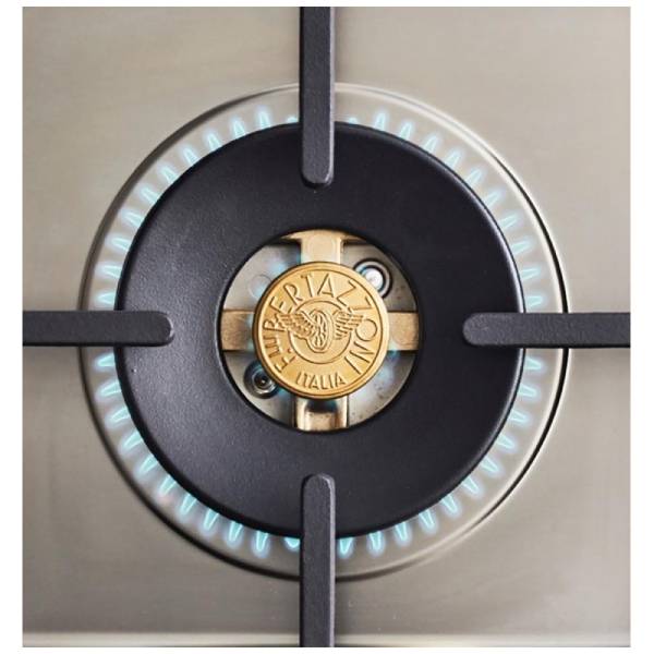 Featuring six high-efficiency brass burners, the main cooktop includes two powerful 19,000 BTU dual-ring burners that can boil water in under six minutes—setting the standard for performance. Additionally, four MonoBloc burners of varying sizes allow you to cater to diverse cooking styles, while a delicate simmer option at 750 BTUs ensures you can prepare even the most delicate dishes. The included large, removable cast-iron griddle adds versatility to your cooking options, making it easy to create everything from pancakes to grilled sandwiches.
