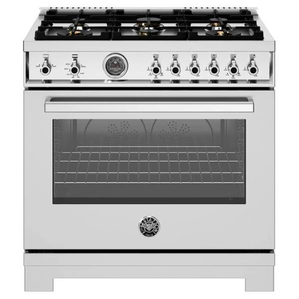Bertazzoni PRO366BCFGMXT Gas Range, 36 inch Exterior Width, Convection, 6 Burners, 5.7 cu. ft. Capacity, 1 Ovens, Stainless Steel colour Dual Convection, Telescopic Gliding Extension Rack, Soft Close Door, Temperature Probe, Infrared Broiler