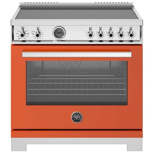 Bertazzoni PRO365ICFEPART Induction Range, 36 inch Exterior Width, Self Clean, Convection, 5 Burners, 5.7 cu. ft. Capacity, 1 Ovens, Arancio Orange colour Soft Close Door, Telescopic Gliding Extension Rack, True European Convection, Temperature Probe
