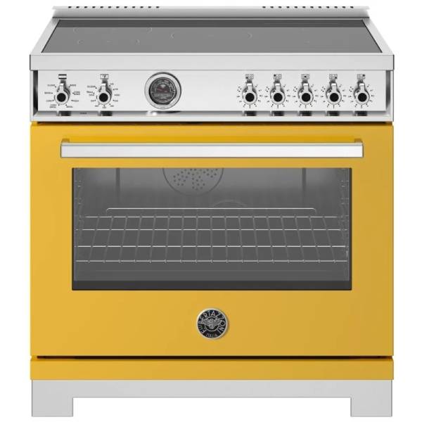 Bertazzoni PRO365ICFEPGIT Induction Range, 36 inch Exterior Width, Self Clean, Convection, 5 Burners, 5.7 cu. ft. Capacity, 1 Ovens, Giallo Yellow colour Soft Close Door, Telescopic Gliding Extension Rack, True European Convection, Temperature Probe