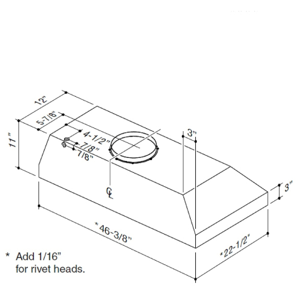 Dimensions: Width - 46-7/16", Depth - 22-9/16".