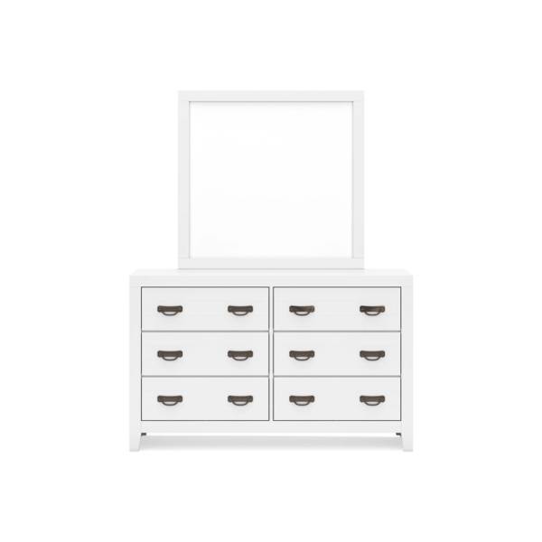 Constructed from hardwood solids, okoume veneer, and MDF substrates, this dresser offers lasting durability with a sleek, polished look. Six spacious drawers with dovetail construction and smooth metal center guides provide reliable storage for clothing and accessories. The dark-finished hardware offers a subtle contrast, while the wood grain laminate-lined drawer interiors add a refined touch. The included mirror attaches easily to the dresser, completing the look with understated elegance.