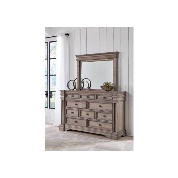 The Blairhurst Dresser and Mirror brings a touch of classic charm to your bedroom.Its spacious drawers and refined detailing enhance both style and function.Crafted for durability, it effortlessly blends timeless appeal with practicality.