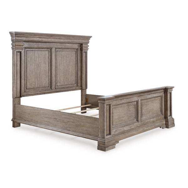 The Blairhurst King Panel Bed is a striking addition to any bedroom, offering an exceptional blend of traditional design and modern comfort. Its mansion-style silhouette evokes casual elegance, with classic-inspired decorative columns and inset framed panels. The light warm grayish brown glazed wood finish adds a relaxed, sophisticated vibe, while the breakfront pilasters and inset picture frame panels enhance the bed’s timeless appeal.