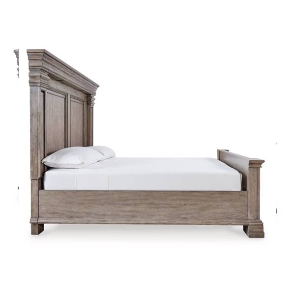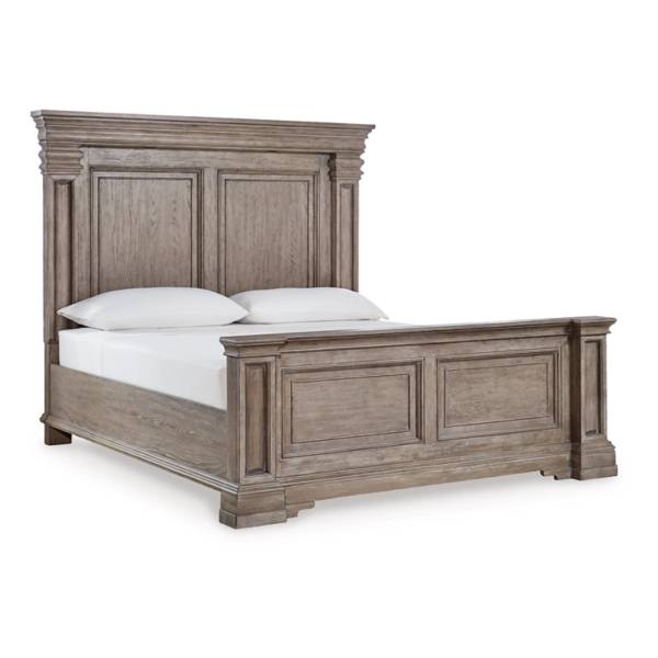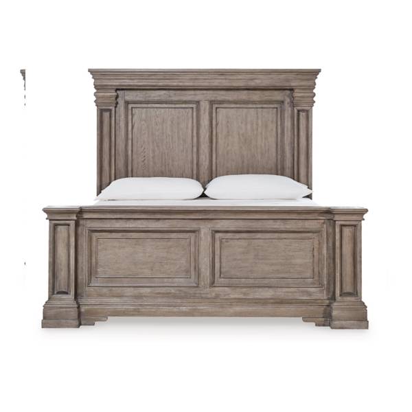The Blairhurst Queen Panel Bed is an exceptional piece that brings a sense of timeless elegance to your bedroom. With its grand mansion-style silhouette, this bed effortlessly blends casual traditional charm with modern functionality. The decorative columns and inset framed panels evoke classic design, while the light warm grayish brown glazed wood finish adds a relaxed, inviting touch. The bed’s distinctive breakfront pilasters and inset picture frame panels further enhance its sophisticated character, making it a standout centerpiece in any bedroom.