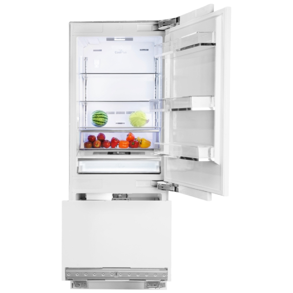 The Blomberg BRFB1920FBI features a sleek panel-ready exterior that seamlessly integrates into your kitchen cabinetry, creating a cohesive and polished aesthetic. Its 30-inch width and counter-depth design make it an ideal choice for modern kitchens where space is at a premium.