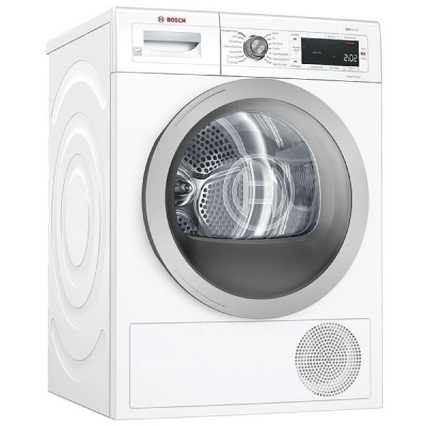 Bosch 500 Series WTW87NH1UC Electric Dryer, 24 inch Width, 4.0 cu. ft. Capacity, 4 Temperature Settings, Stackable, Steel Drum, Wifi Enabled, White colour Ventless (Heat Pump)