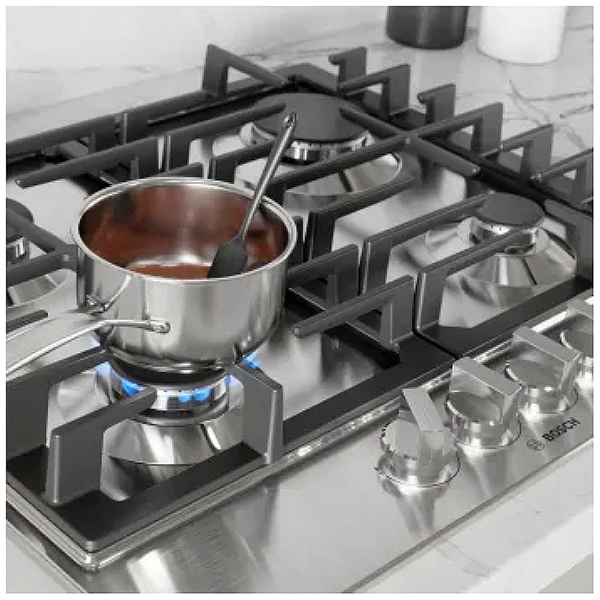 Bosch 500 Series NGM5458UC Gas Cooktop, 24 inch Exterior Width, 4 Burners, Stainless Steel colour