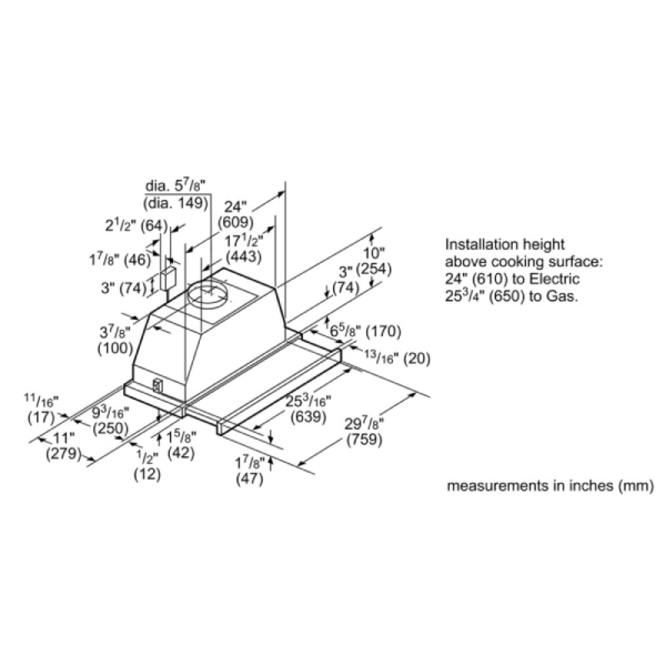 | Performance | 300 CFM Integrated Blower Included , Three Speed Slider Control , 2 Halogen Lights - 120 V, 20 Watt Max., G-4 Base , 6 inch Round Duct at Discharge |