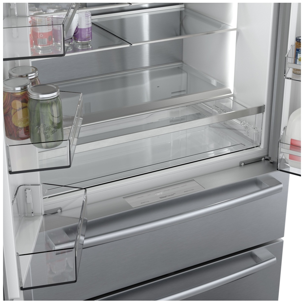Experience sleek design and best-in-class freshness with the revolutionary FarmFresh System™. VitaFreshPro™ presets automatically balance BOTH temperature and humidity for optimal food storage. Dual compressors and evaporators ensure precise cooling and humidity control while reducing odor transfer. The easy-to-clean stainless steel exterior keeps your kitchen looking beautiful. With Home Connect™, remotely control and monitor your appliance for efficient management of your day.