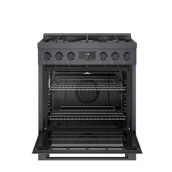 Bosch 800 Series HGS8045UC Gas Range, 30 inch Exterior Width, Convection, 5 Burners, 3.7 cu. ft. Capacity, 1 Ovens, Black Stainless Steel colour
