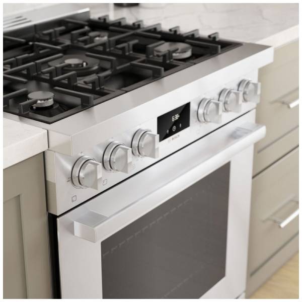 Modern Aesthetic Featuring a 30-inch exterior width, the Bosch 800 Series HGS8055UC Range boasts a contemporary and elegant aesthetic that complements any kitchen decor. Its stainless steel finish not only exudes sophistication but also adds a touch of style to your culinary space.