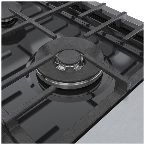 At the heart of the RGM8058UC are its four powerful burners, including a versatile dual-flame power burner. This burner is engineered to deliver both intense heat for rapid cooking and a gentle flame for more delicate tasks, providing exceptional versatility. Whether you're searing steaks or gently simmering sauces, the dual-flame burner offers precise temperature control and consistent results, embodying Bosch's dedication to top-tier culinary performance.