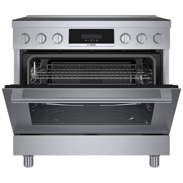 Bosch 800 Series HIS8655C Induction Range: 36-inch Exterior Width, Convection, 5 Burners, 3.7 cu. ft. Capacity, 1 Oven, Stainless Steel, Temperature Probe, True European Convection.