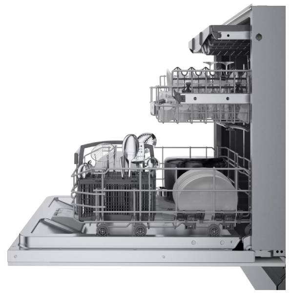 With a remarkably quiet 42 dB sound level, this dishwasher operates almost silently, allowing you to run it at any time without disturbance. It’s equipped with Bosch’s innovative CrystalDry™ technology, a patented system that ensures every dish comes out perfectly dry, even plastic items, which can be challenging for many dishwashers.