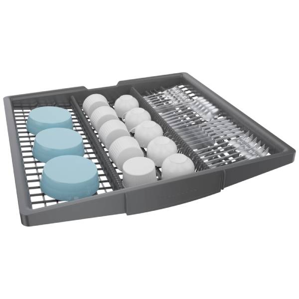 Designed with versatility in mind, this model features a standard third rack for extra capacity, providing space for larger or uniquely shaped items. Additionally, Bosch’s RackMatic® system allows for easy height adjustments on the upper rack, giving you the flexibility to fit in a variety of dishware, from tall glasses to large pots.