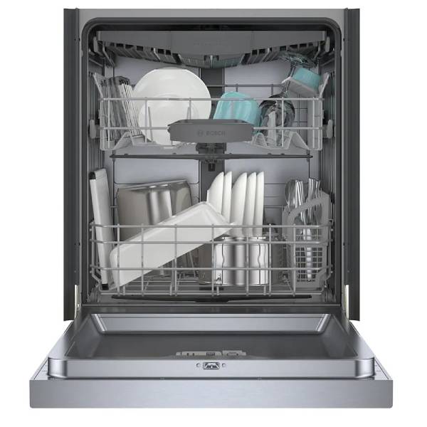 Experience precision, efficiency, and advanced technology with the Bosch 100 Series SHE5AE75N Dishwasher. This 24-inch stainless steel dishwasher brings top-tier functionality to your kitchen, providing exceptional cleaning power with minimal noise.